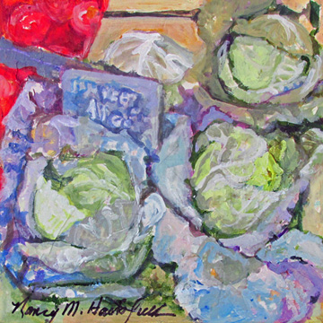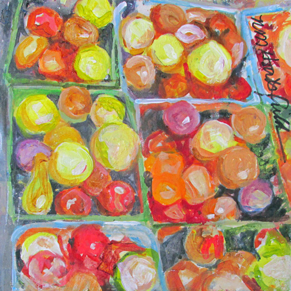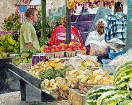 I've always loved the old Montgomery Curb Market, and street markets across Europe as well. The produce, the flowers, the homemade sweets—everything speaks to me! Wherever I go, I find the vendors to be truly special people, and I'm compelled to paint it all, to capture the ambience that so appeals to me.